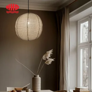 Retro Counter Handmade Art Bedroom Lamps Wabi Sabi Style Cotton Linen Fabric Chandelier Lantern